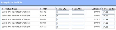 - In the Manage Price Set SKUs screen, you will need to fill in quantities and pricing.