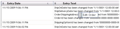 Order notes provide a full audit trail history of customer orders. On the Orders container, highlight an order, right-click and select Manage Order Notes.
