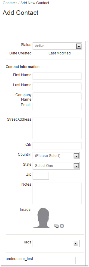 The “underscore” field on this form is an example of the types of custom fields that can be created to customize your Marketier installation. Often you may need to create extra fields to import from Salesforce or other third party databases. Such Custom Profile Properties must be added by a developer.