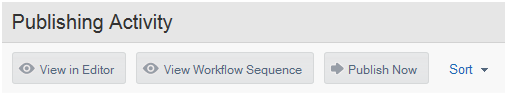 You can sort Publishing Activity information by Page Title and Created Date by selecting from the Sort drop-down menu.